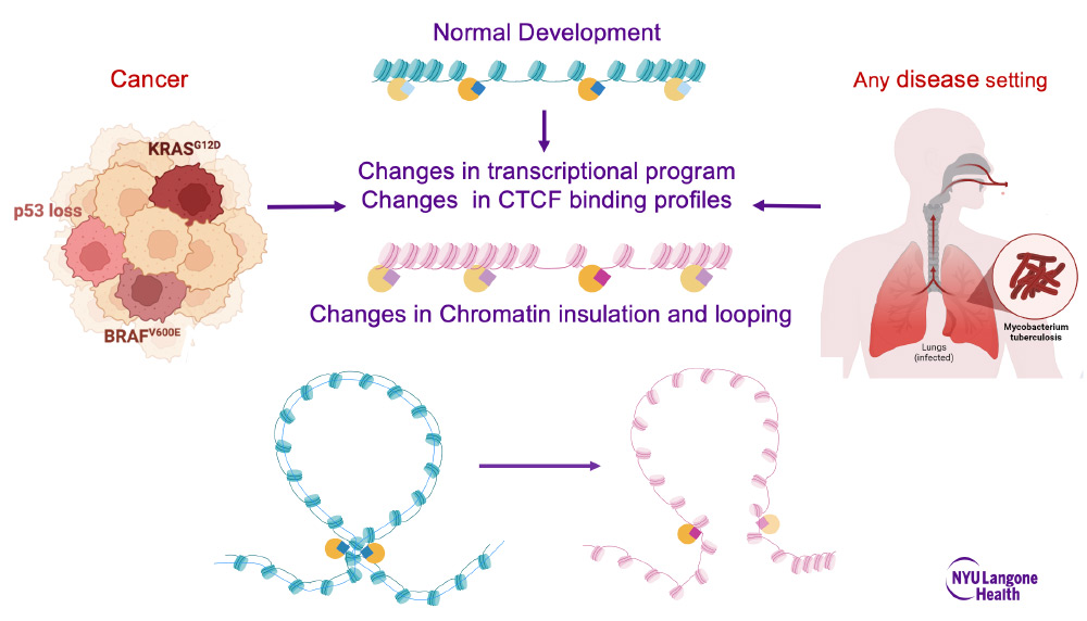 - Do C, Jiang G, Cova G, Katsifis CC, Narducci DN, Sakellaropoulos T, Vidal R, Lhoumaud P, Tsirigos A, Regis FFD, Kakabadze N, Nora EP, Noyes M, Hansen AS, Skok JA. Binding domain mutations provide insight into CTCF’s relationship with chromatin and its ability to act as a chromatin organizer. Biorxiv. 2024. Epub 20240925. doi: 10.1101/2024.01.11.575070. PubMed PMID: 38370764; PMCID: PMC10871189.